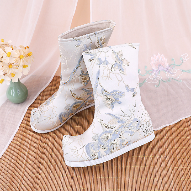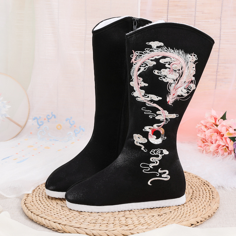 玄機秋冬古風刺繍ブーツ古い北京布靴厚手の漢服ブーツの中で高くなったベルベットの中筒ブーツ