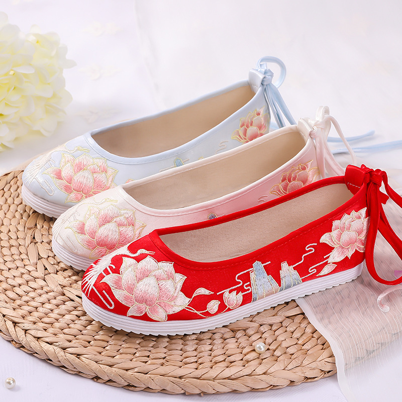 中国風秀禾靴赤い平底結婚靴2020新型民族風刺繍靴ひも布靴代発