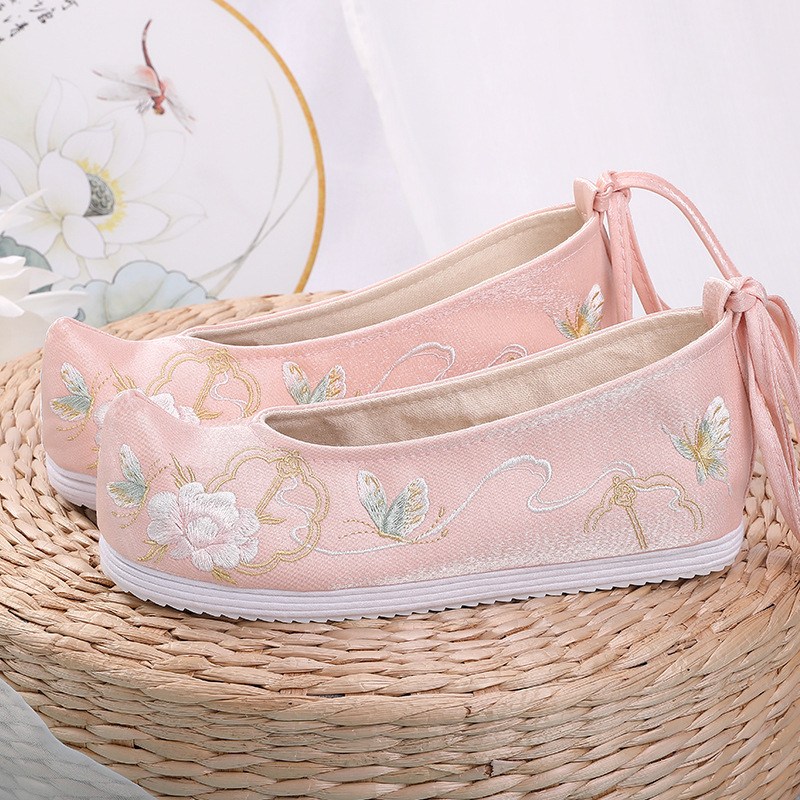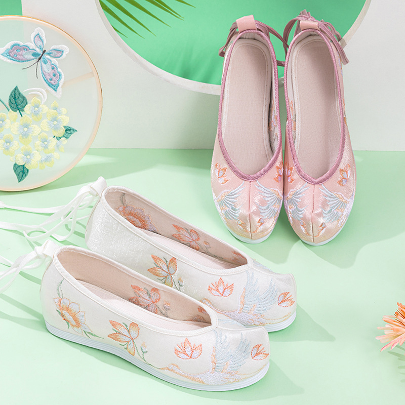 語蝶の新型の漢服の靴の中で高くなって、首を長くして、靴の民族の風の弓の靴の漢の元素の女性の靴を結びます。