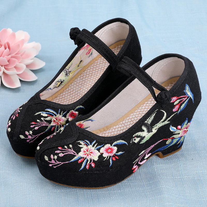 カササギ春秋新型広場ダンス刺繍靴民族風牛筋底坂と結婚靴靴