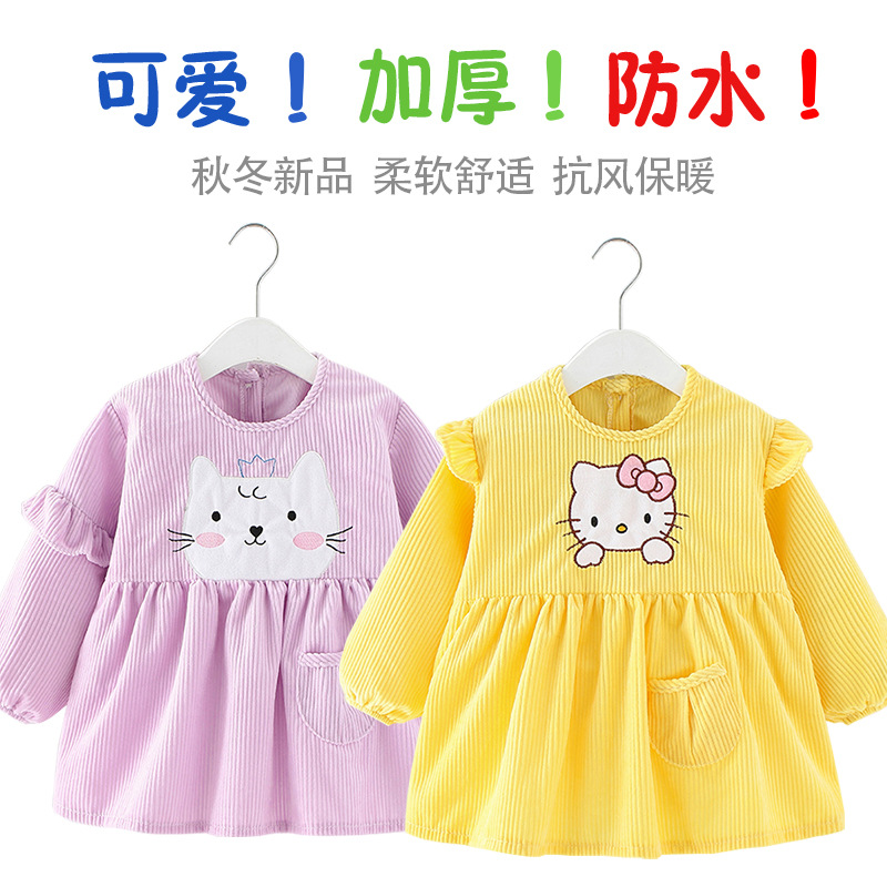 秋冬の赤ちゃんのカバーファッションお姫様のスカート防水防汚幼稚園の食事汚れ防止服子供の外着