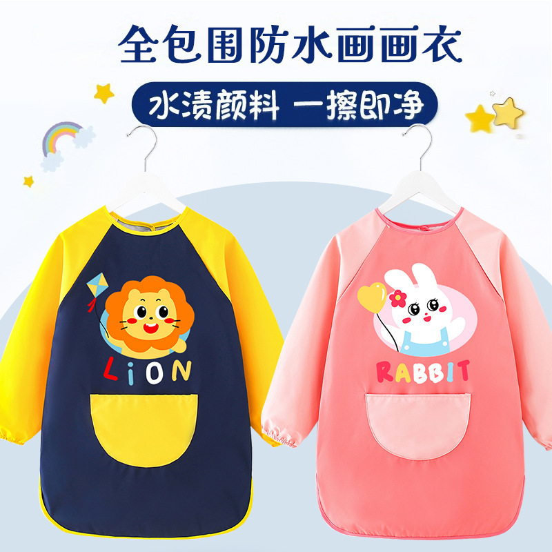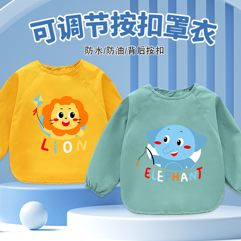 赤ちゃんのカバーは防水で汚れ防止の子供のエプロンの長袖を着ます。