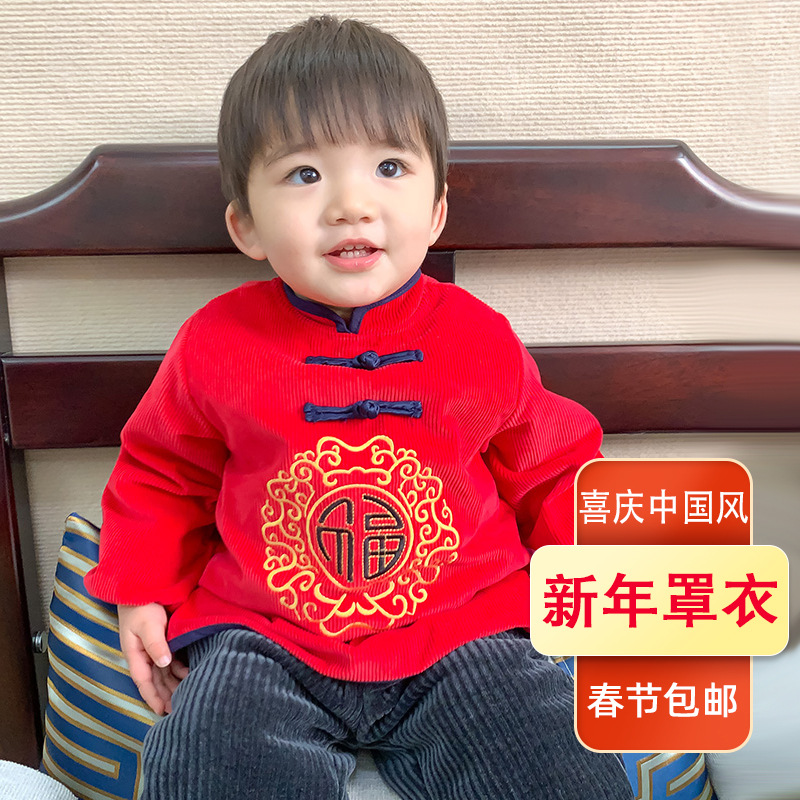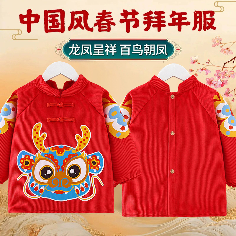 2024新型子供カバー赤ちゃん新年唐装お祝い逆着男女の子長袖防水エプロンよだれかけ
