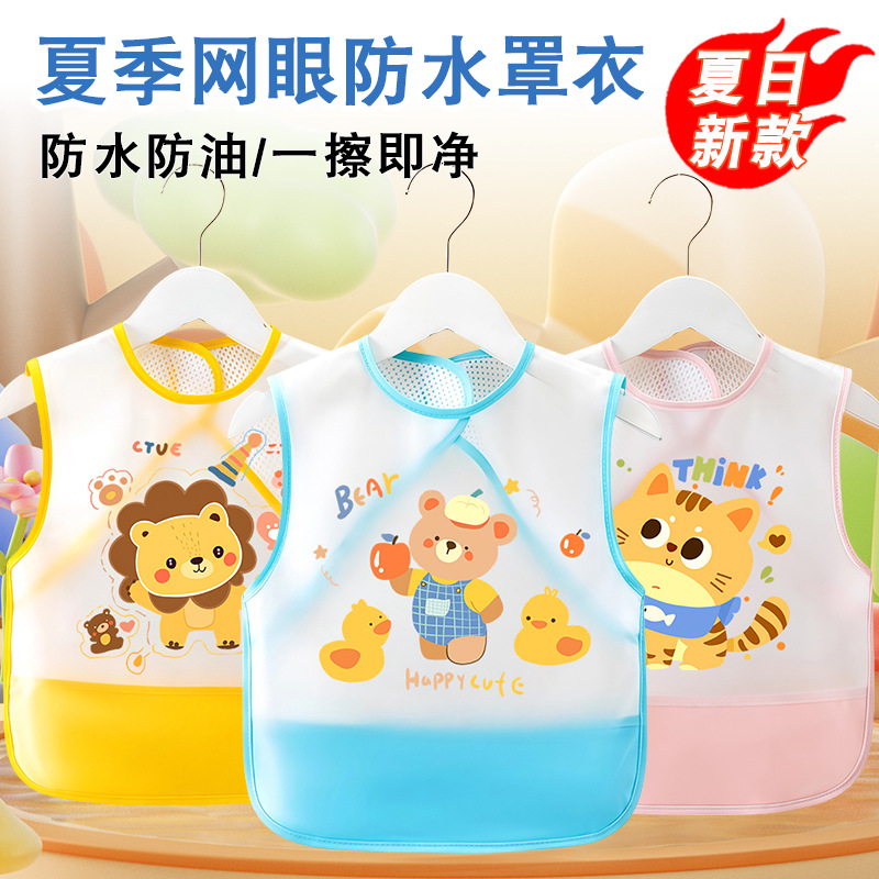 ベビーよだれかけ、子供用スモック、夏用薄手メッシュ防水防汚エプロン、離乳食サプリメント、食事用バッグ、防護服