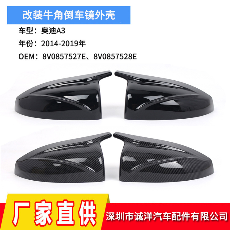 卸売りは14-19年に適用されます。アウディa 3バックミラーのカバーは牛角バックミラーのカバーを改造します。補助灯付きです。