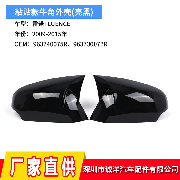 09-15 ルノー フルエンス ペーストホーン バックミラーハウジングに適しており、光沢のある黒のバックミラーハウジングに変更されています。