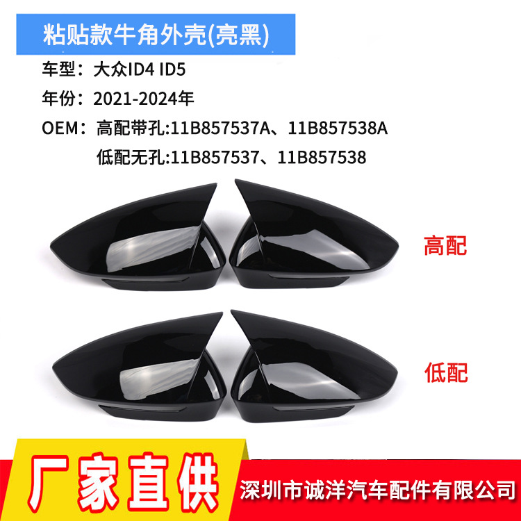 21-24 フォルクスワーゲン ID4 ペーストホーンバックミラーハウジング ID5 ブライトブラックバックミラーハウジング卸売に適しています