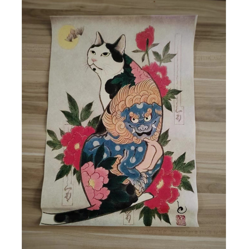 日本式武士猫入れ墨猫レトロポスター壁アートa3