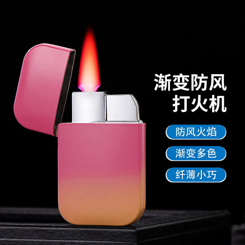 ネット赤爆金グラデーション色超薄型エアライター防風耐久性高颜値彼氏ミニライター卸売り