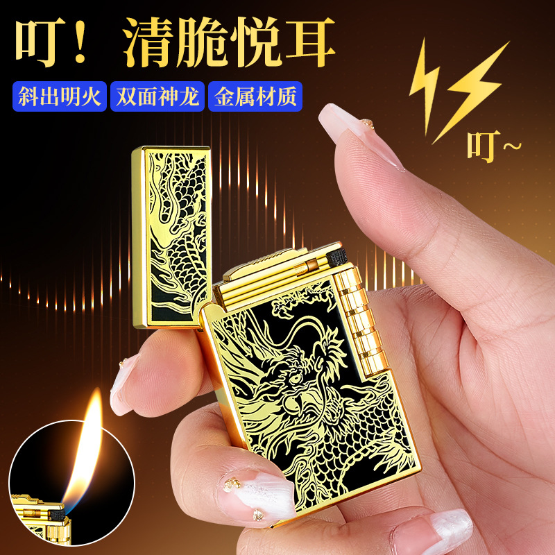 ZO8826繊薄鋼音朗声軽豪華レトロライター空気入れ明火横滑り砥石斜火金属火機