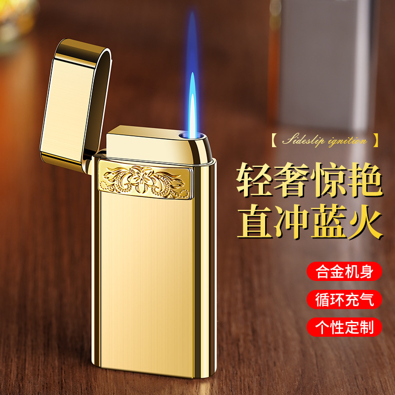 Baicheng Yuling No. 2 パーソナライズされた超薄型防風炎インフレータブル青い炎ライターギフト高品質ホットスタイル卸売