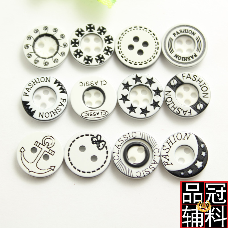 メーカー直販二眼四眼樹脂シャツボタン白黒漫画ボタン服装補助材料12.5mm