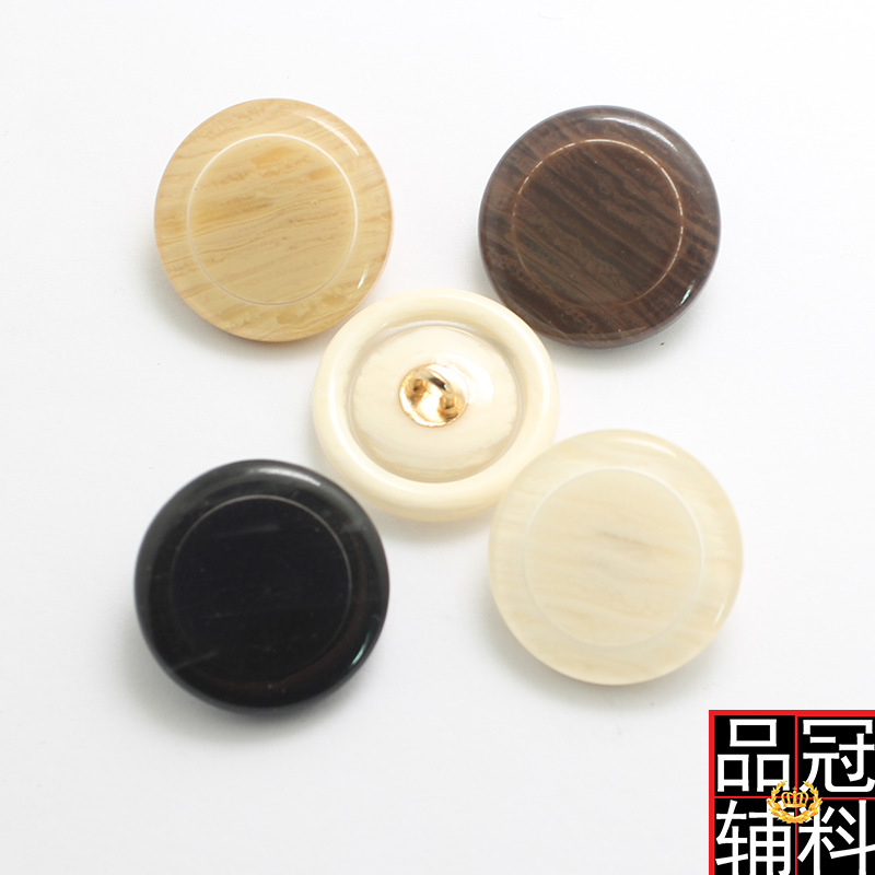 樹脂面の金属の足は木目のボタンに似せています。女性のコートのファッションコートのセーターのボタンは15-25です。