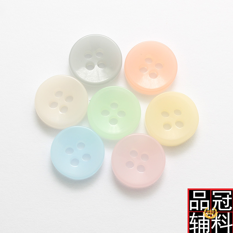 ゼリー色樹脂四眼ボタン微凹スポットシャツシフォンシャツ百合ボタンカラー実色11mm