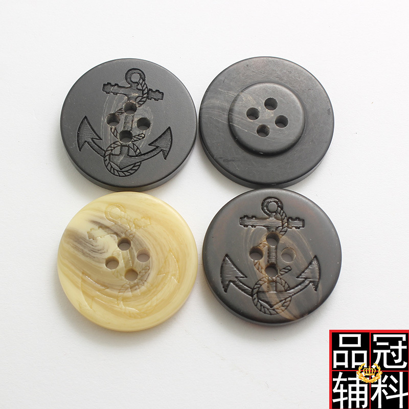 四眼フラットスティック花樹脂ボタンレザー海アンカーバック凸コートスーツウインドブレーカーボタン三色15-25mm