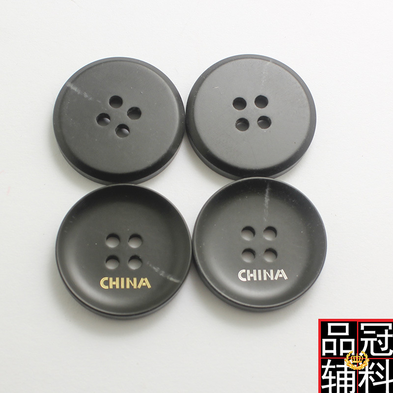 黒樹脂ボタン四眼円形アルファベット付き男性風衣スーツボタン椀形ボタン15-28mm