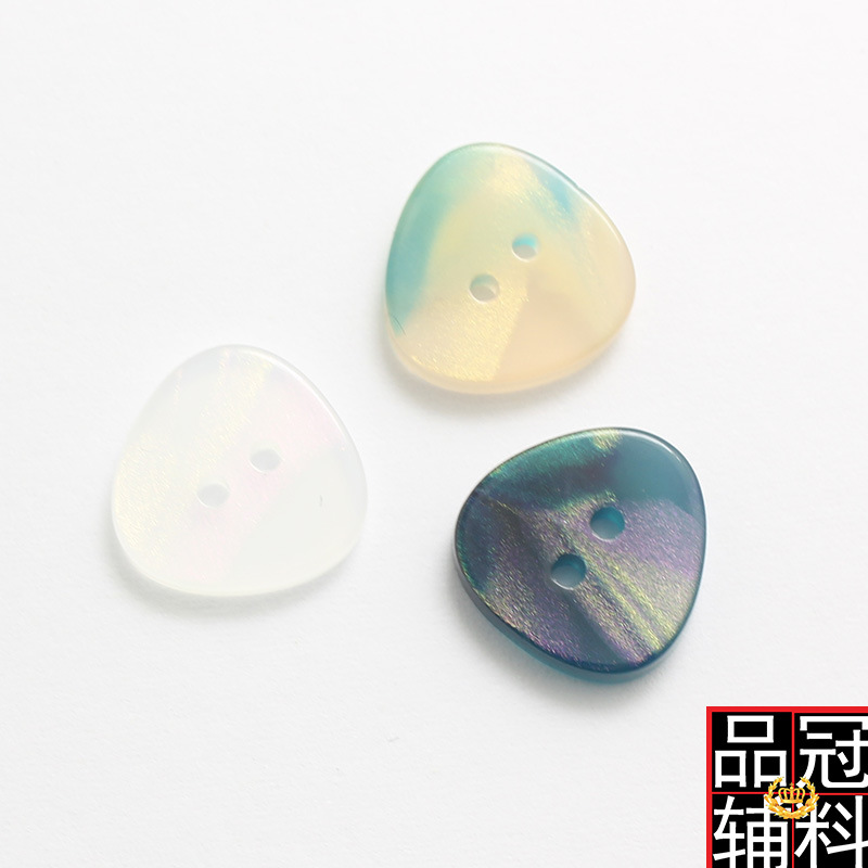 丸い角の三角形のシャツのボタンの二眼の樹脂は酢酸ボタンのファッションのカーディガンのボタンのカラーの12.5mmをまねます。