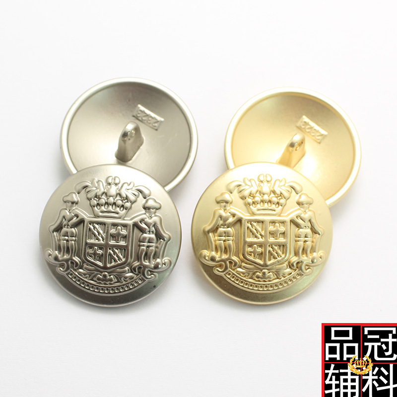 亜鉛合金金属シールドボタン手縫い男女スーツ風衣ボタン砂金沙ニッケル色18/23mm