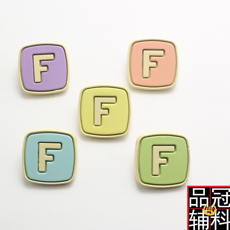 Fアルファベット角型金属ボタン付きカラー塗装ファッション子供コートボタン服装装飾ボタン23mm