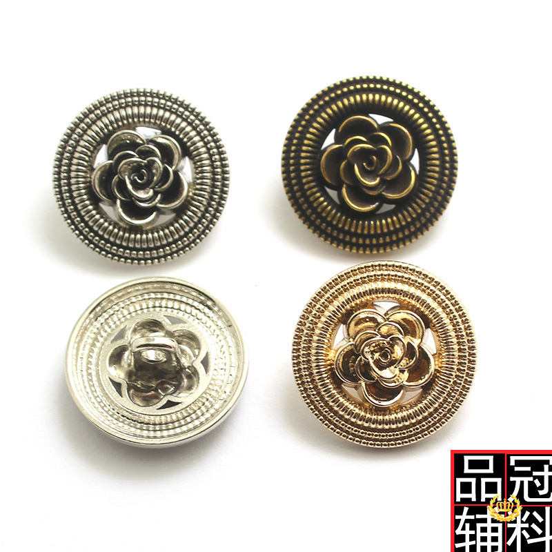 レトロなツバキの花の金属のボタンの卸売りの風衣のスーツのニットのボタンの円形の15-23mm
