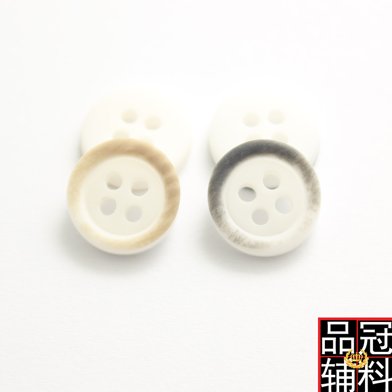 細辺グラデーション色樹脂ボタン二層四眼ボタン男女シャツボタン黒ベージュ11.5mm