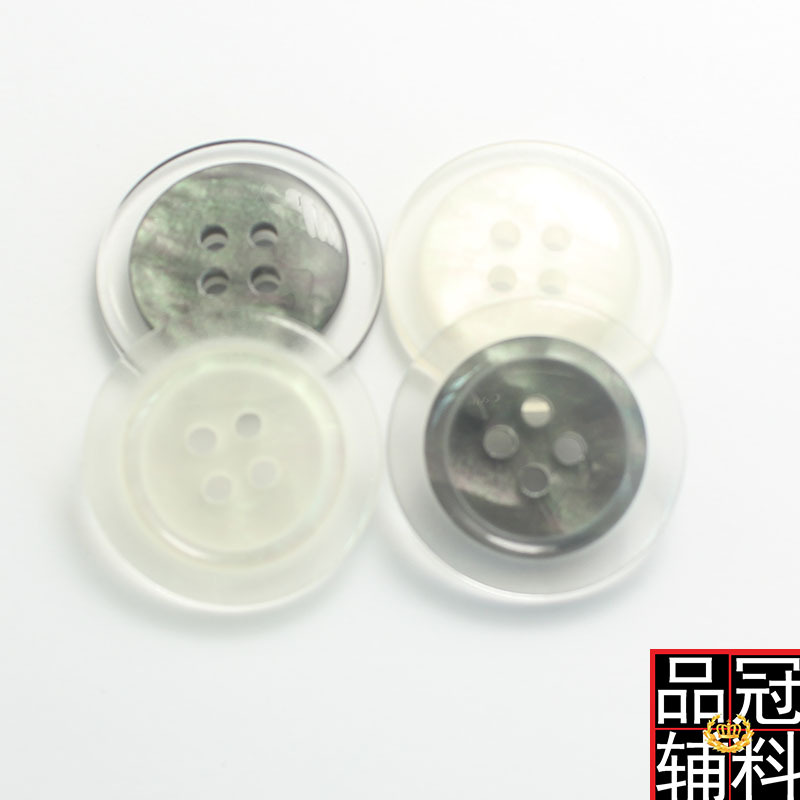 透明な丸い辺は貝の4つの目の樹脂のボタンをまねて卸売りします。