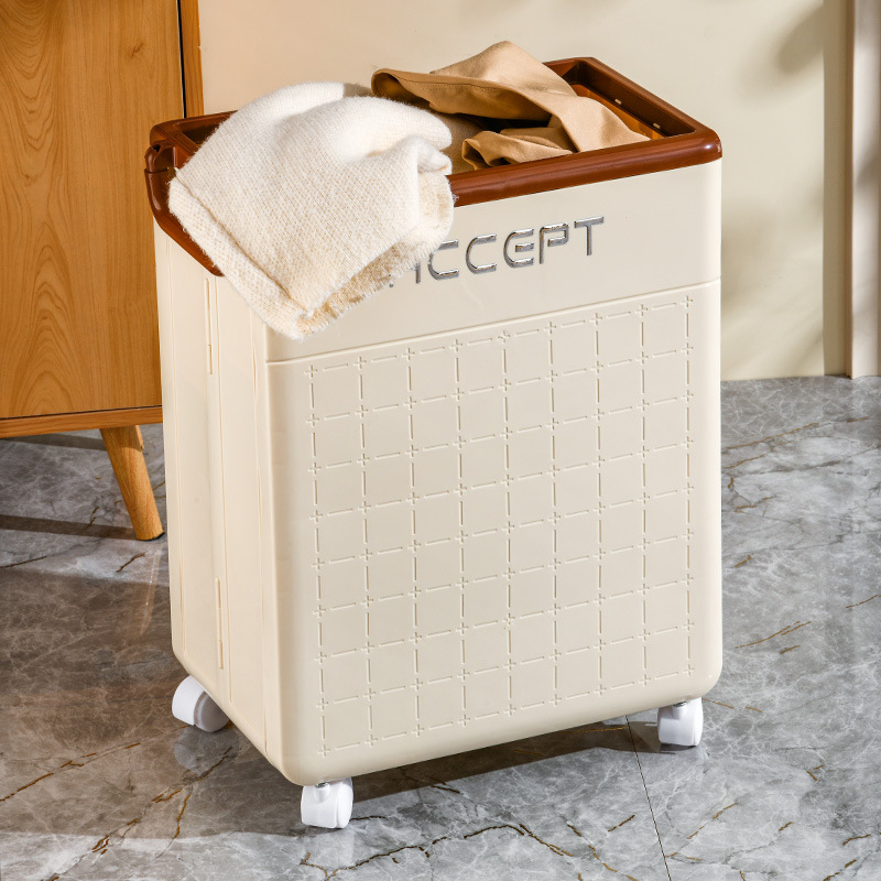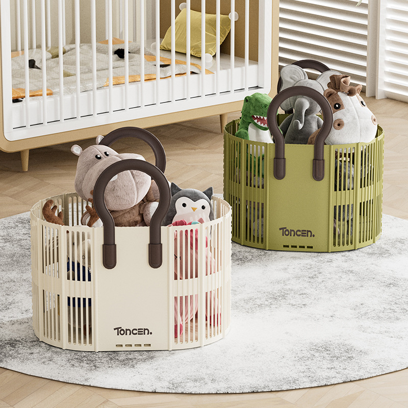 プラスチック洗濯かごクリームスタイル収納かご取っ手洗濯桶洗濯かご大容量間食玩具収納かご