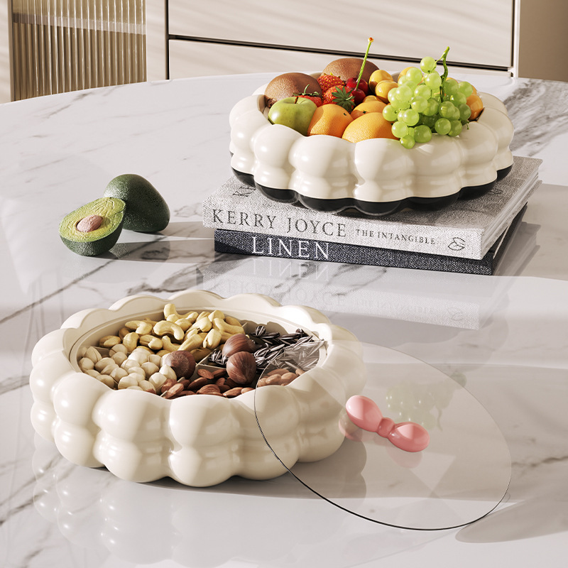クリーム風乾果皿収納ケース分格蓋付きキャンディー小食皿陶磁器果物皿軽贅沢高級高群裕