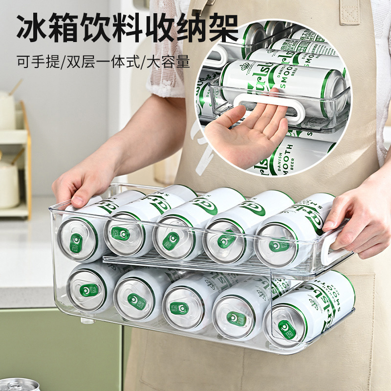 冷蔵庫飲料収納ケース二重引き出し式冷蔵ビールコーラ缶ローリング自動補充収納ケース