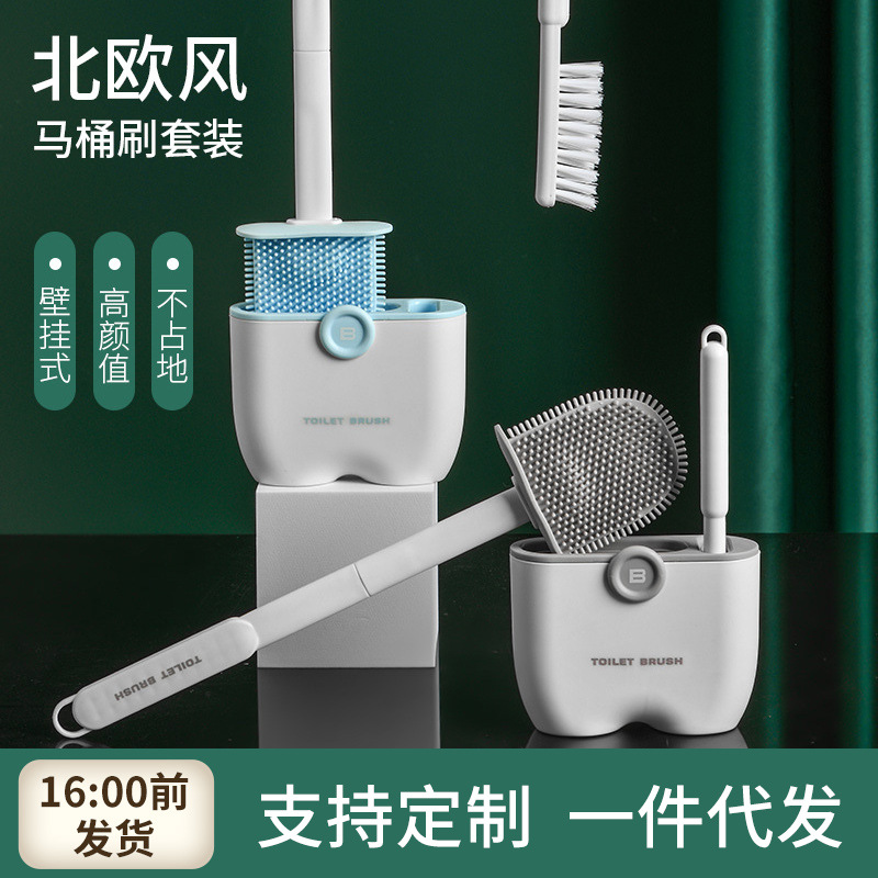 トイレブラシ家庭用死角のないシリコントイレブラシ壁に穴を開けないトイレ清潔神器壁掛けセット