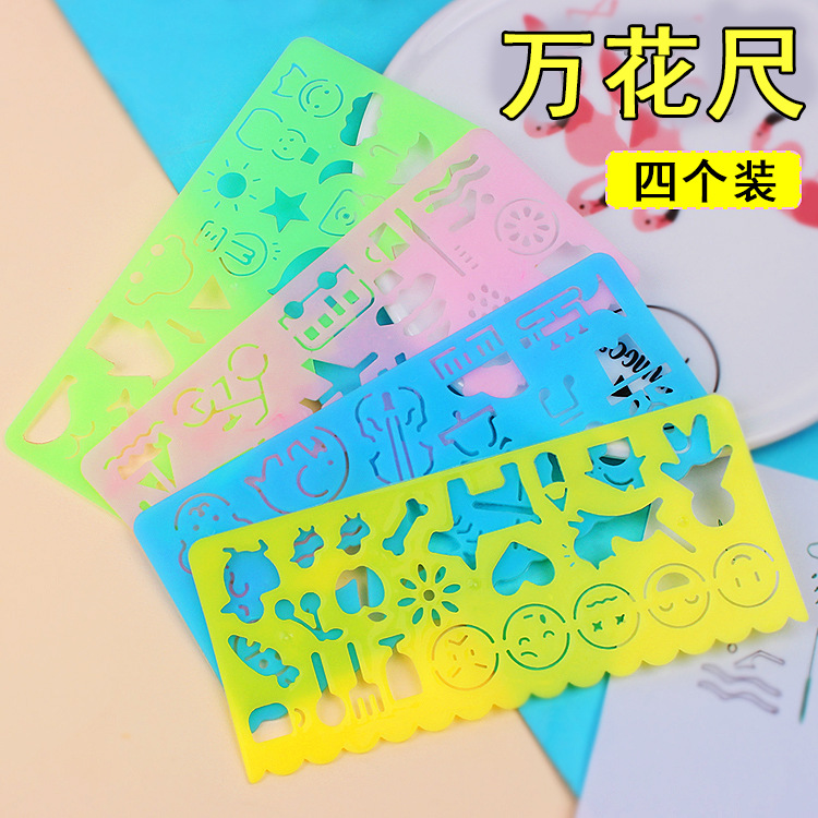 絵の定規の板の定規の小学生の学習用品のアイデアの万花の定規の文房具のアイデアの造形の1セットの4つ