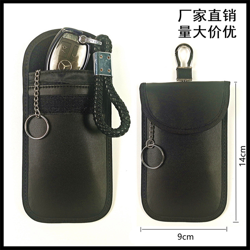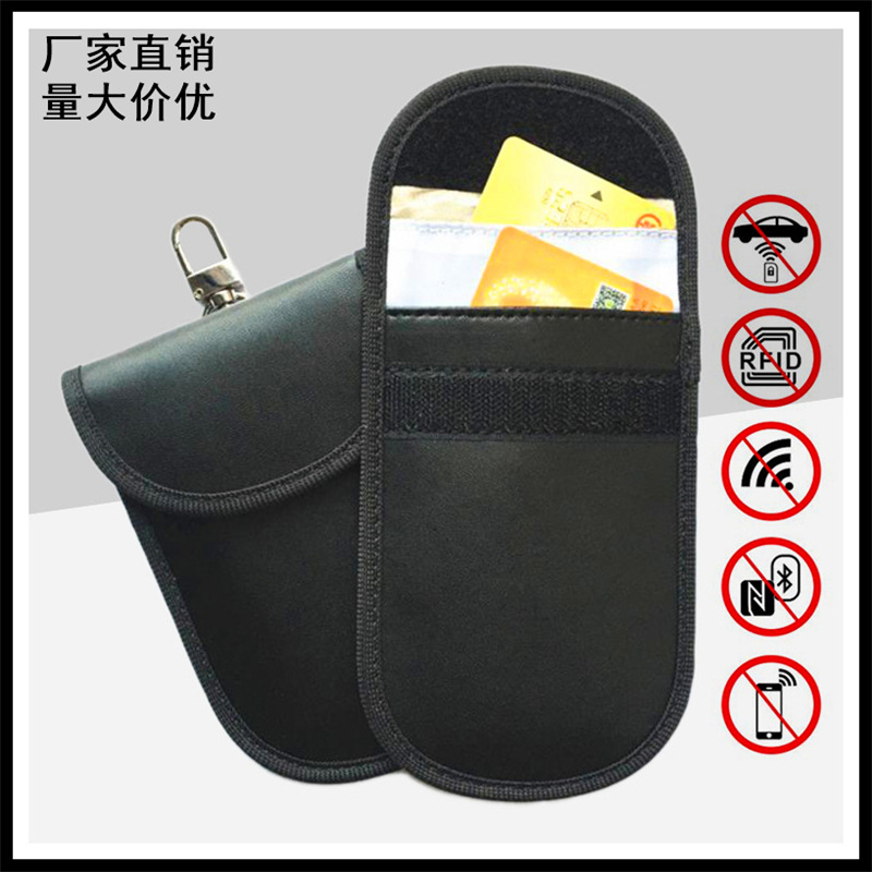 外国貿易新型皮革円形自動車キーシールド携帯電話信号シールド袋ファラデー織物