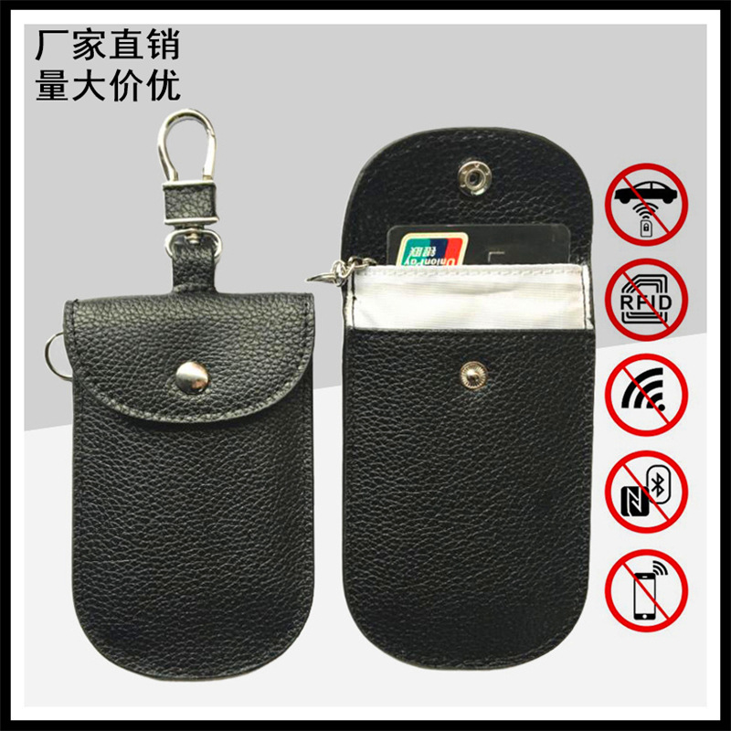 2024外国貿易新型rfidシールドキーバッグ盗難防止消磁防止シールドカーキーpu皮黒フック