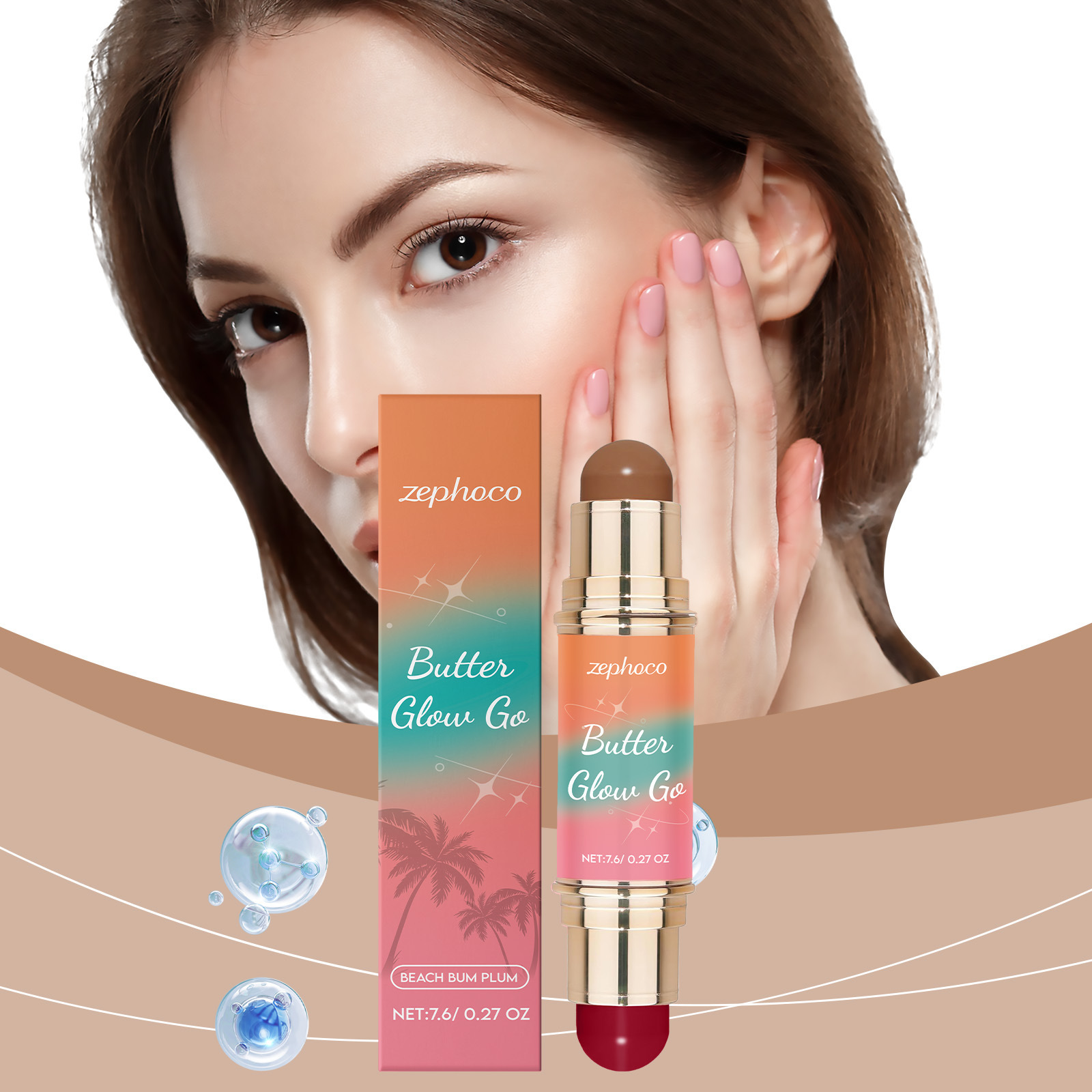 ZEPHOCO 多目的コントゥアリングスティック双頭コントゥアリング立体チークソフトミストメイクアップ効果長持ちポータブルメイクアップ