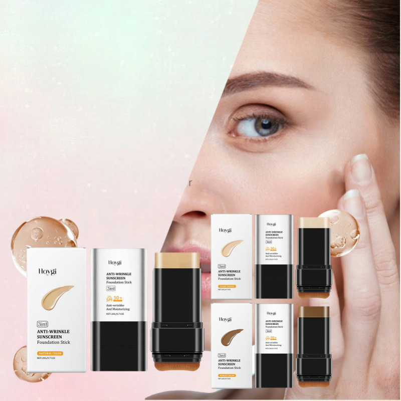 HOYGI 保湿保湿ファンデーション スティック、軽くて保湿力があり、明るく、ポータブル、マットで透明、脂性肌と乾燥肌に適しています。