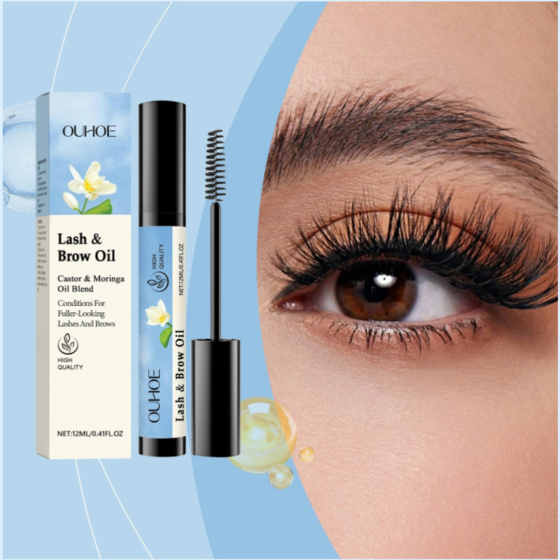 OUHOE マスカラ、まつげと眉毛のケア、ナチュラルで長持ちする黒く美しいカール、にじみにくいマスカラ