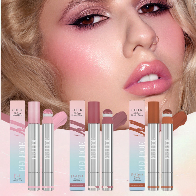 EELHOE 回転液体ブラッシュリップグロス、保湿、簡単に塗布でき、色褪せない、多機能コントゥアリングハイライターブラッシュリキッド