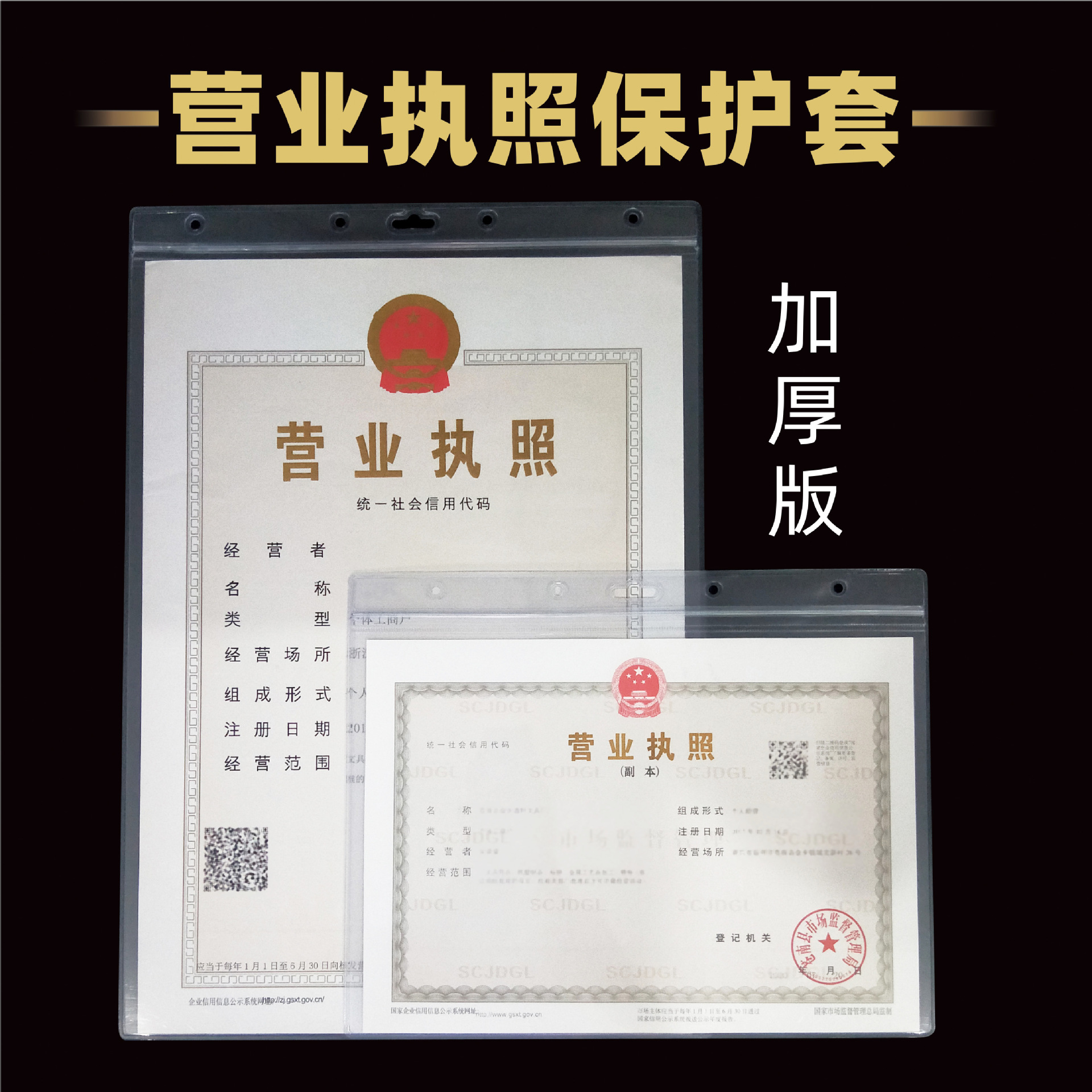 新版横版縦版透明営業許可証保護カバーa3原本a 4副本口座開設許可証三合一