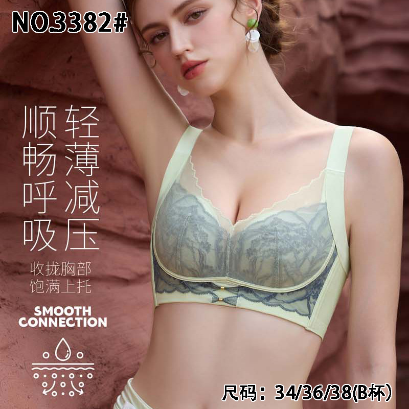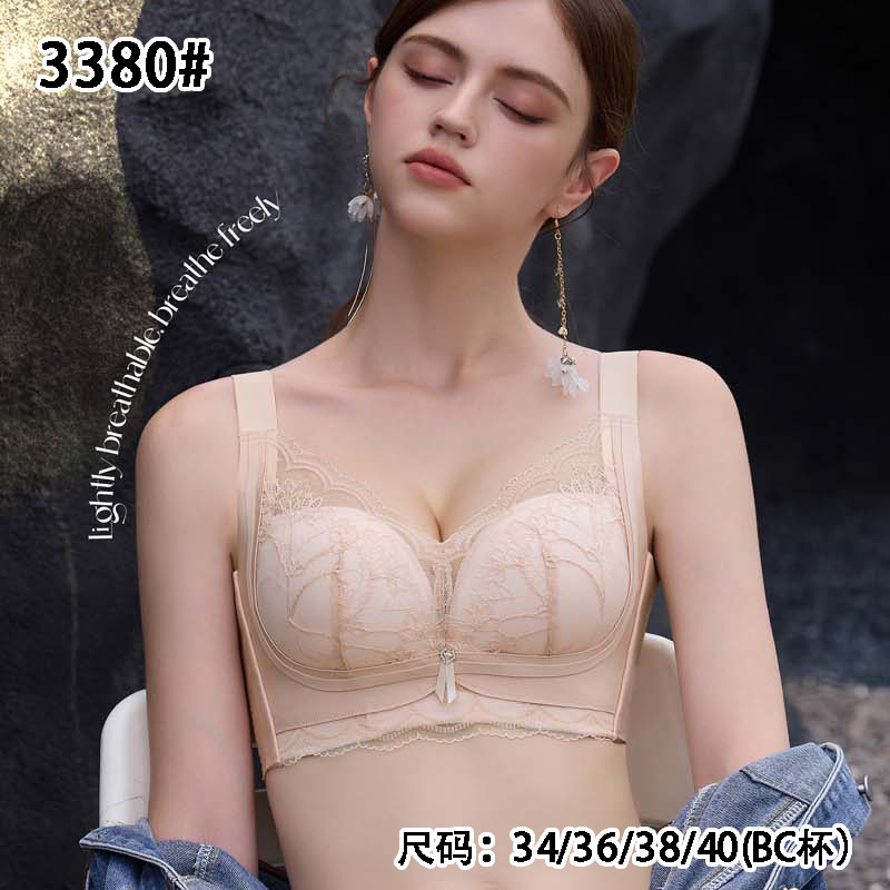 レディース成人下着34-38中薄BC通杯スチールリングなし通気性快适収副乳3371ブラジャー