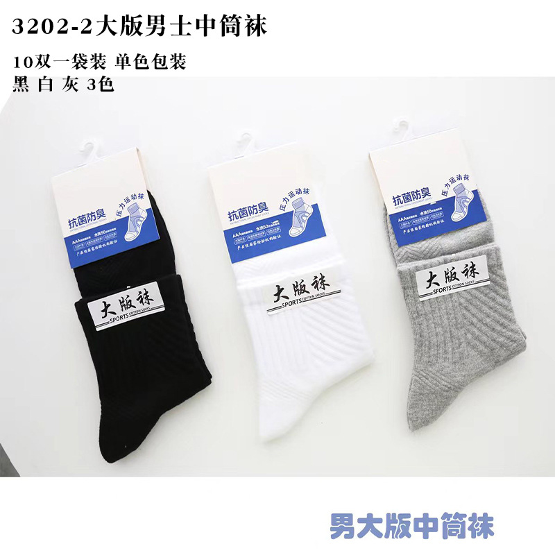 秋冬綿質男性大板靴下純色ファッション通気性柔らかい中筒男性靴下3202-2