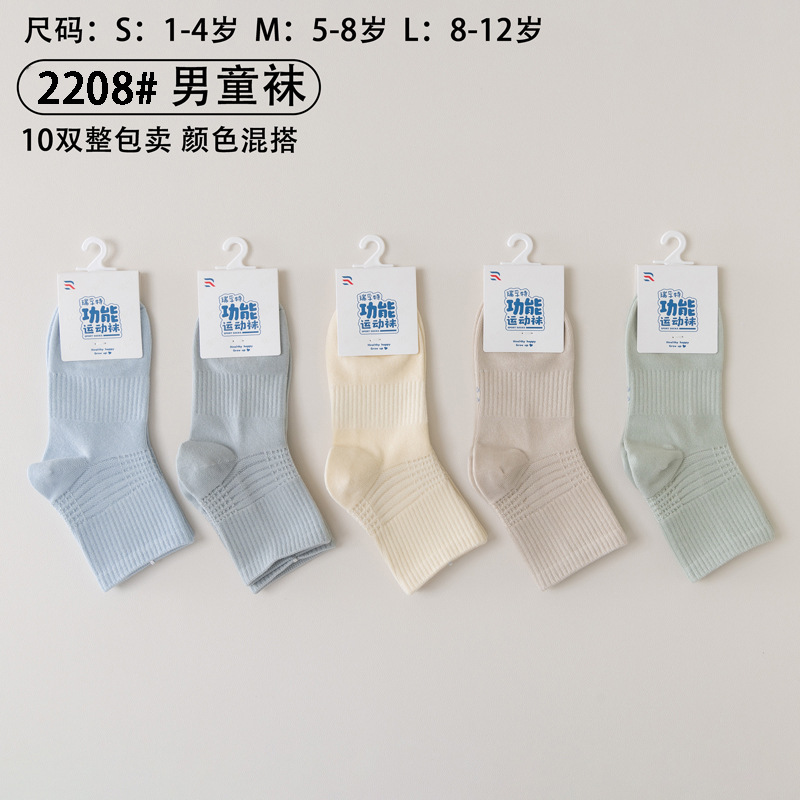 秋冬綿質児童靴下ファッション系ホットスタンプ通気性のある肌の柔らかい中筒男子児童靴下2208