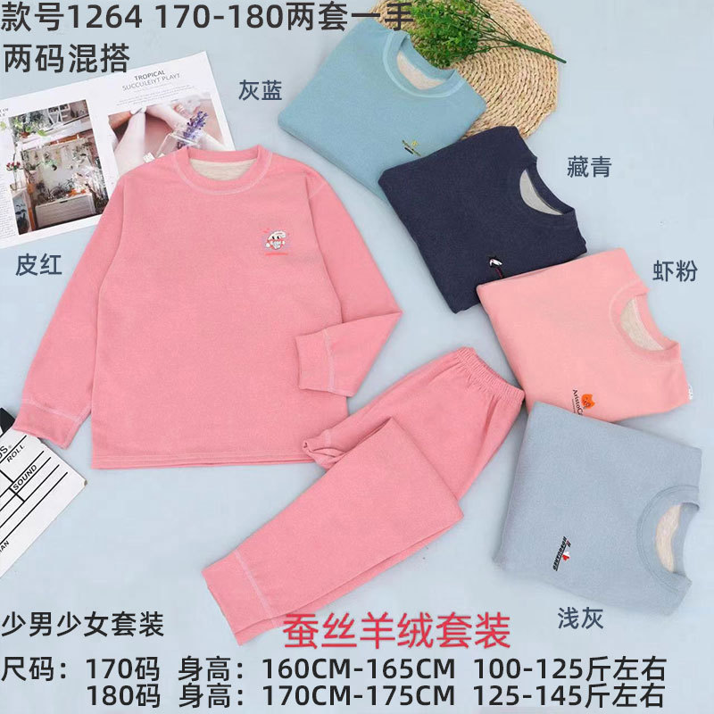 秋冬新作少年少女シンプルシルクカシミヤ保温発熱丸襟秋衣秋ズボンセット1264津