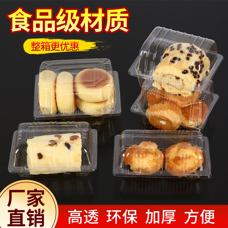 K57トランペットの洋菓子箱使い捨て透明プラスチックの厚手のボタン付き長方形のケーキ箱シュークリーム箱