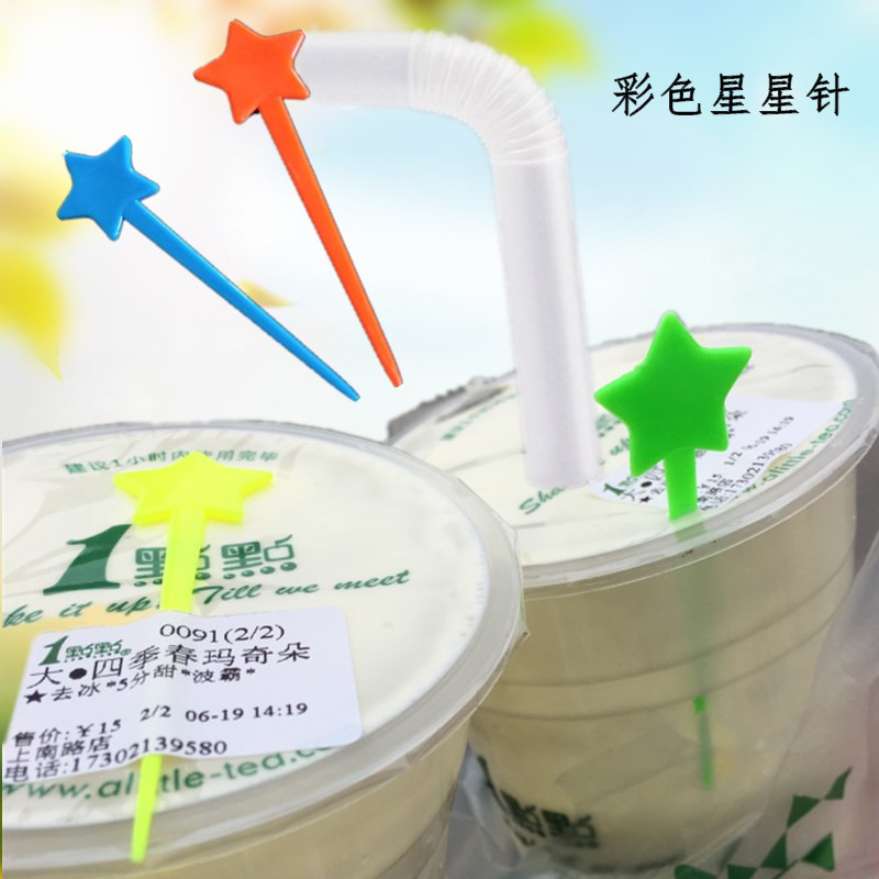 星果針使い捨て果物フォークカラー星果物針ケーキフォーク透明フォークミルクカバー棒500本