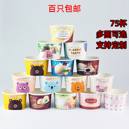 75使い捨てアイスクリーム紙ボウルアイスクリームカップアイスクリームボウルケーキ紙カップ100セット小包500セットスプーン