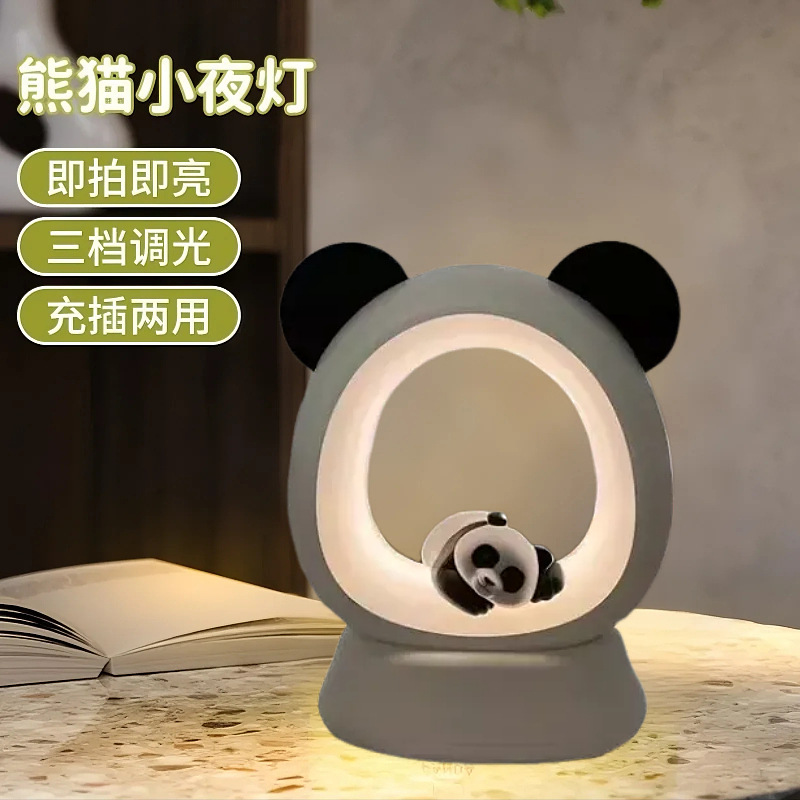 外国貿易新しいパンダナイトライト充電式寝室のベッドサイド睡眠テーブルランプ雰囲気女の子の誕生日パット三色ライト