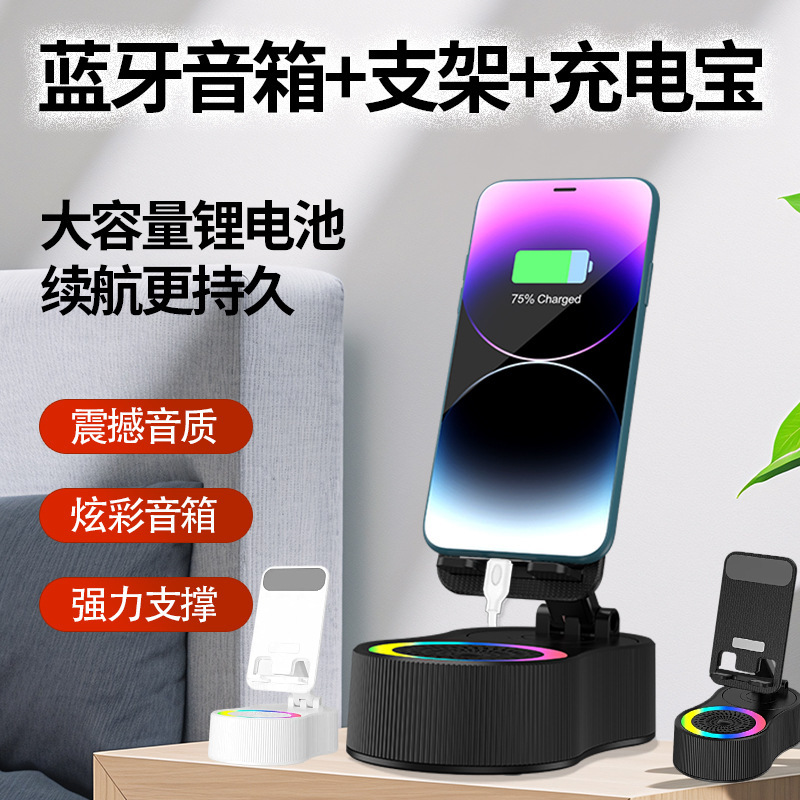 クロスボーダーレイジー携帯電話ホルダー Bluetooth スピーカー パワーバンク 360 ° LEDカラーライト付き回転折りたたみストレッチオールインワン