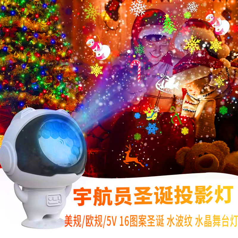 クロスボーダー宇宙飛行士16パターンライトクリスマス投影白い雪花ライトフィリンクリスタル舞台ランプ水波紋夜灯