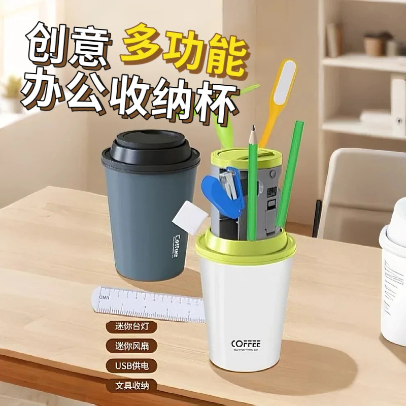 クロスボーダー新しいキティ猫文具カップ子供用多機能文具学習収納カップ USB ナイトライトファンテーブルランプ
