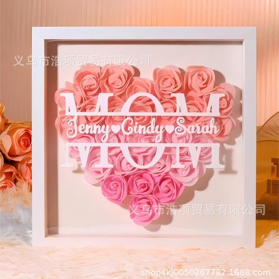 母の日用のカスタマイズされたフラワーシャドウボックス、人気のバラのギフト、母のためのプリザーブドフラワーギフト、スリムモデル